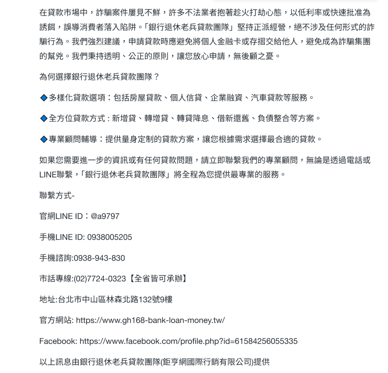 📌我們以「銀行專案」為優先承辦排序,如借款人條件與銀行核貸條件落差太大,又急需週轉資金時,在確實向借款人充分說明利害權衡後,並經由借款人認可,則融資方案為輔助借貸對象,至於錢莊、高利貸則不在我們承辦範圍。